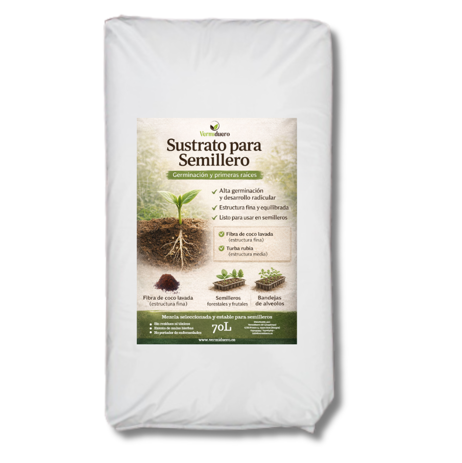 Sustrato para Semilleros Vermiduero es una mezcla especialmente formulada para favorecer una germinación homogénea y un desarrollo radicular equilibrado durante las primeras fases del cultivo.