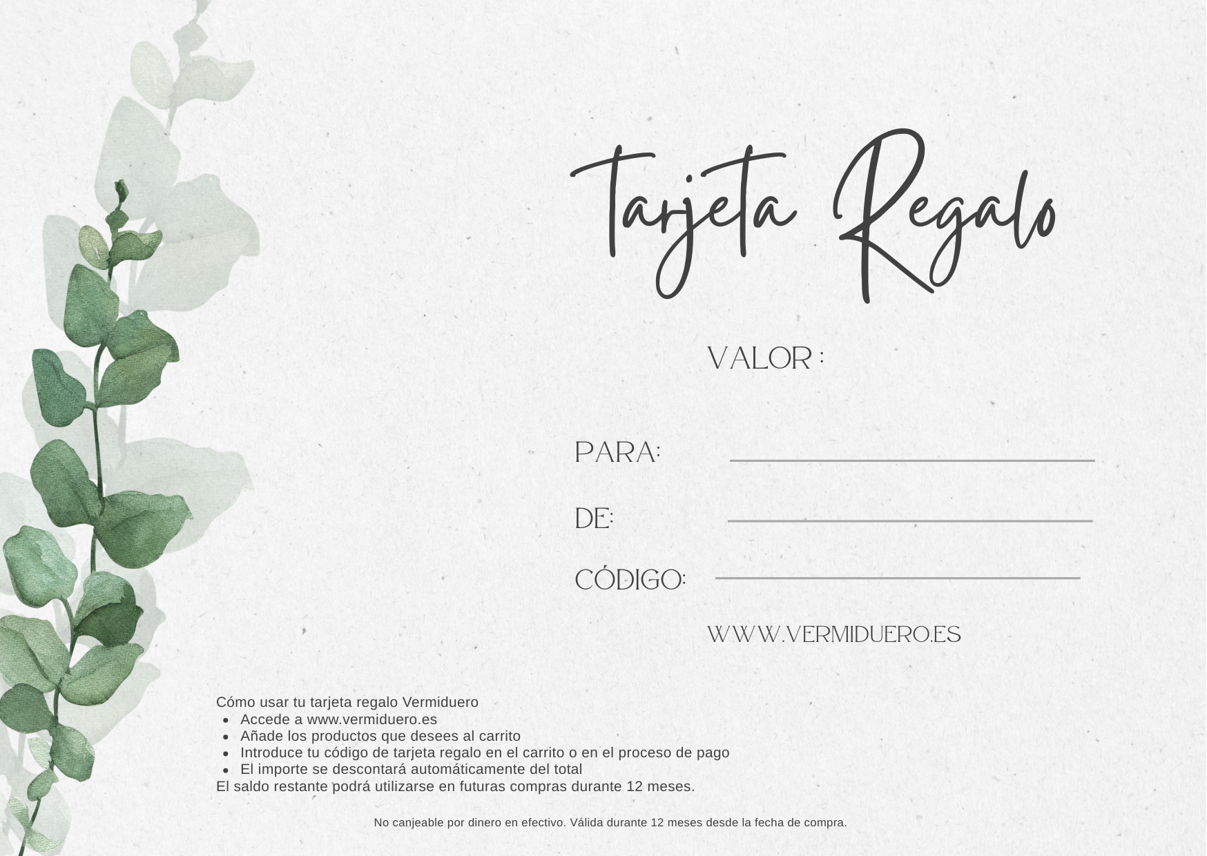 La tarjeta regalo es válida para todos los productos disponibles en la tienda online Vermiduero, incluyendo: